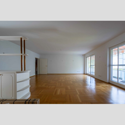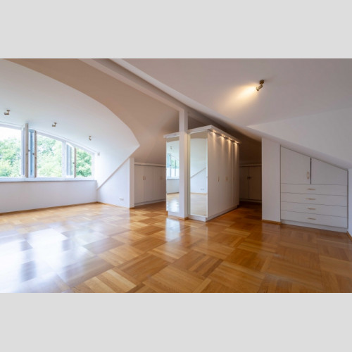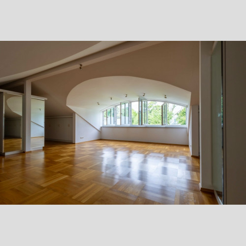 Eigener Eingang zur OG-DG-Maisonette-Wohnung, 5-Zimmer-Wohnung: 1.OG + DG, Wohnfläche ca. 224 m², bereits freigestellt, (bestehend aus Wohn/Esszimmer, Flur, Abstellraum, Diele, WC, Bad, Arbeiten, Schlafen 1, Schlafen 2, Hauswirtschaftsraum, Küche, Balkon, Atelier, Vorraum Atelier, Treppenhaus). Optional ist ein weiterer TG-Stellplatz in der angrenzenden Tiefgarage erhältlich.