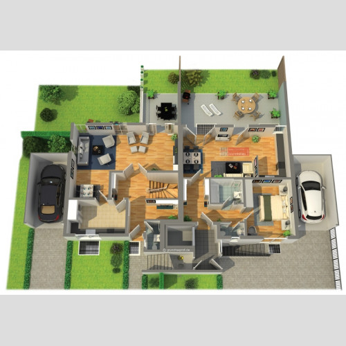 (bestehend aus Wohnen/Essen/Küche, Schlafen, Flur, Bad, WC, Terrasse, Vorraum)