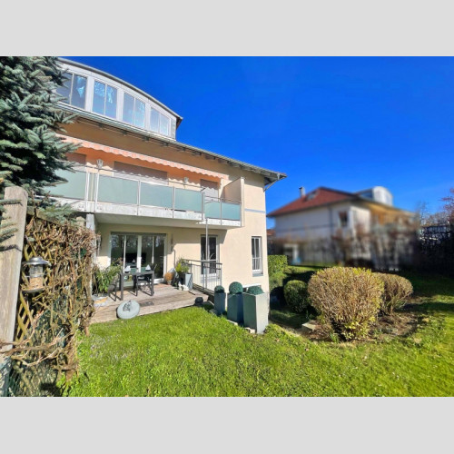 Eigener Eingang zur 3 Zimmer-Wohnung: EG links + Souterrainkeller, 1 Carport, Wohnfläche ca. 135 m², vermietet.