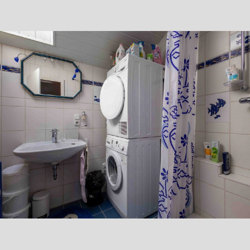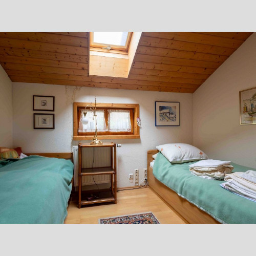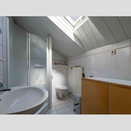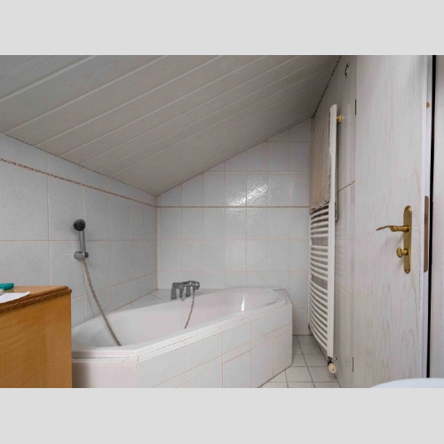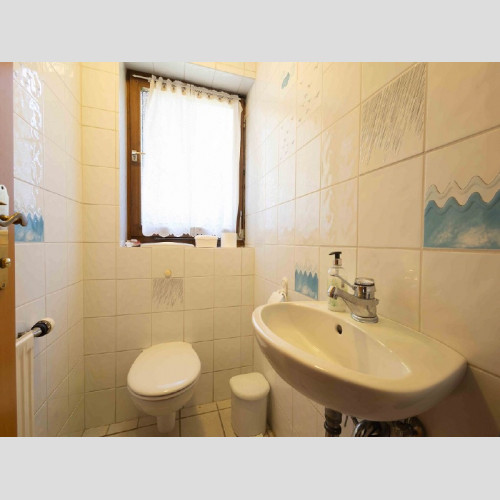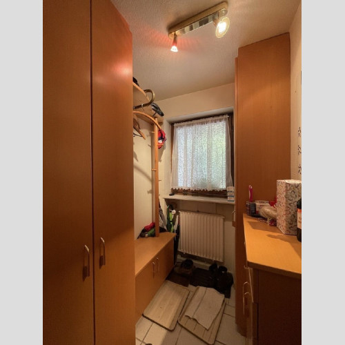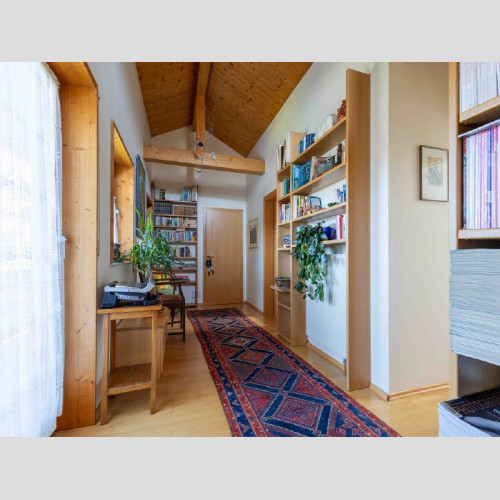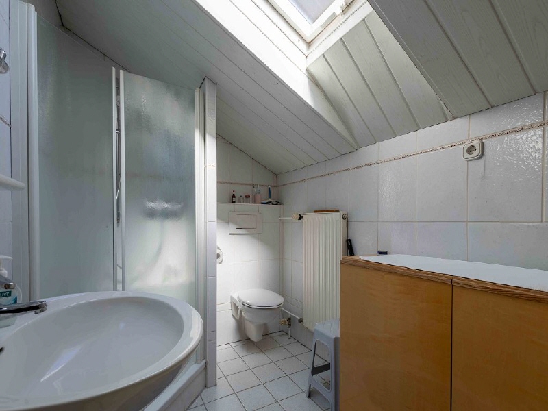 Im ausgebauten Dachgeschoss oberhalb der Garage gibt es einen Raum (dieser ist kleiner als 10m²) und ein Zimmer, Diele, Bad mit Dusche, WC, Waschbecken, Platz für Waschmaschine/Trockner, Gäste WC und einen Balkon. Hier im ausgebauten Dachgeschoss wäre es eine Option daraus eine Art Einliegerbereich zu schaffen, wenn man eine externe Außentreppe an den Balkon anbaut. Dies müsste man vorab mit dem Bauamt Bernau klären.