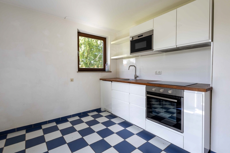 Die Küche ist separat gehalten und bietet Platz für eine gemütliche Essecke.