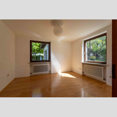 Die Wohnung im Erdgeschoss überzeugt durch eine großzügige Aufteilung und den direkten Zugang zum Garten. Das helle Wohnzimmer mit großem Fenster zur Terrasse schafft ein freundliches Wohnambiente und öffnet den Blick ins Grüne.