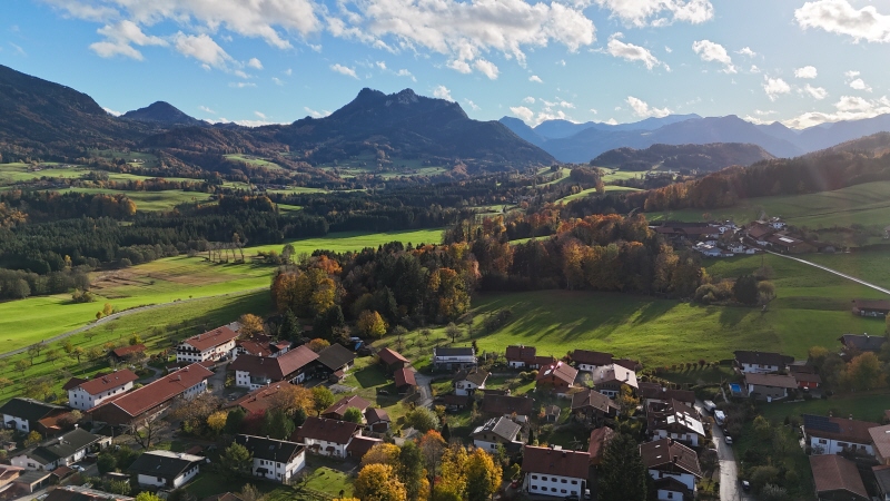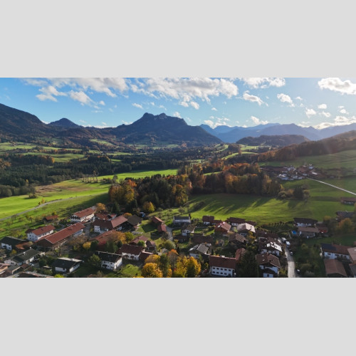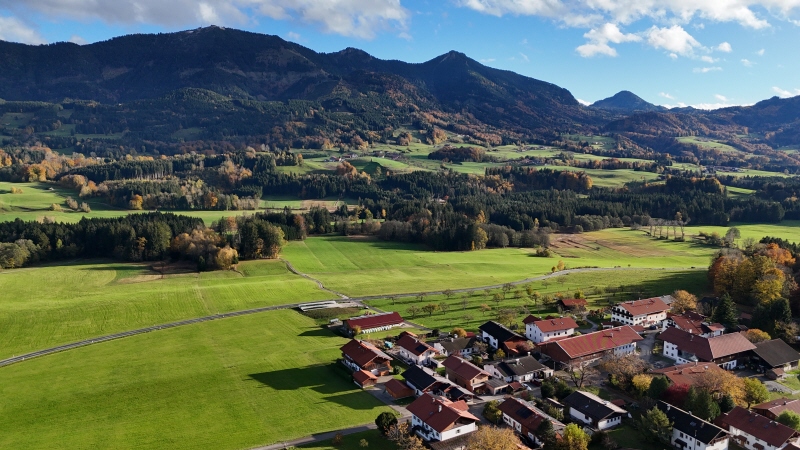 Die Wohnung befindet sich in Törwang, dem Hauptort der malerischen Gemeinde Samerberg im oberbayerischen Landkreis Rosenheim. Die Gemeinde liegt auf einem sonnigen Hochplateau zwischen dem Inntal und dem Chiemsee und gehört mit ihrer Höhenlage von rund 700 Metern zu den besonders reizvollen Lagen im bayerischen Voralpenland. Die Umgebung ist geprägt von weitläufigen Wiesen, dichten Wäldern und den imposanten Gipfeln der Chiemgauer Alpen – allen voran der Hochries, die als Hausberg der Region gilt und ein beliebtes Ziel für Wanderer, Paraglider und Mountainbiker ist.