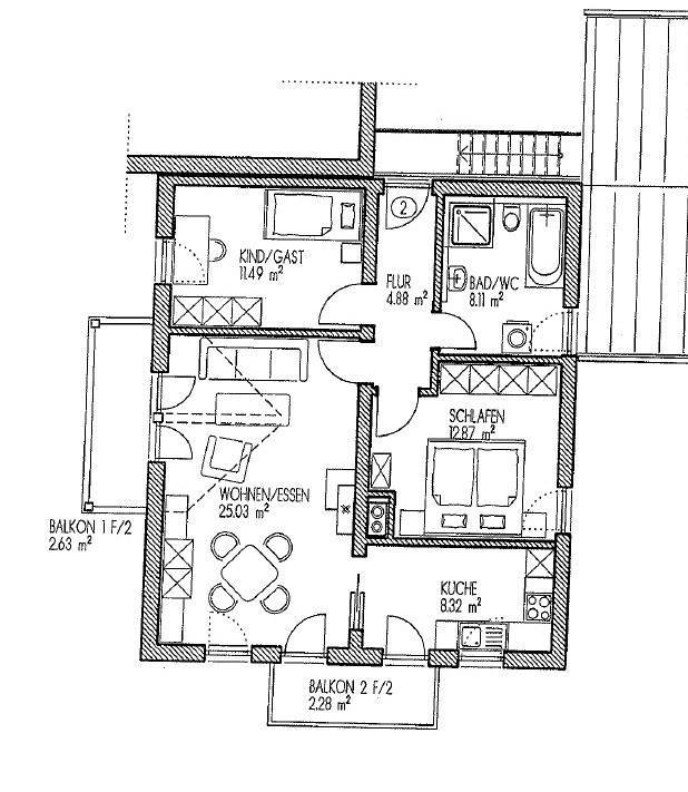 * Die Grundrisse sind für Maßentnahmen nicht geeignet. Die eingezeichneten Möbel auf den Bilder gehören nicht zur Vermietung und werden nicht mitvermietet.