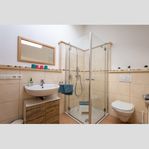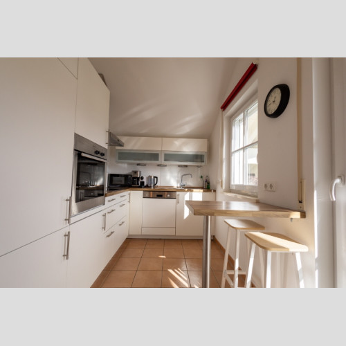Die Wohnung befindet sich im Obergeschoss/ Dachgeschoss und ist über eine Außentreppe begehbar.